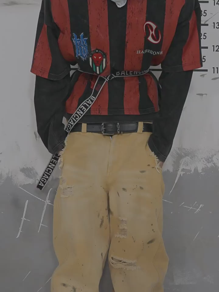 HAS2SONS loose baggy splashed ink distressed yellow pants